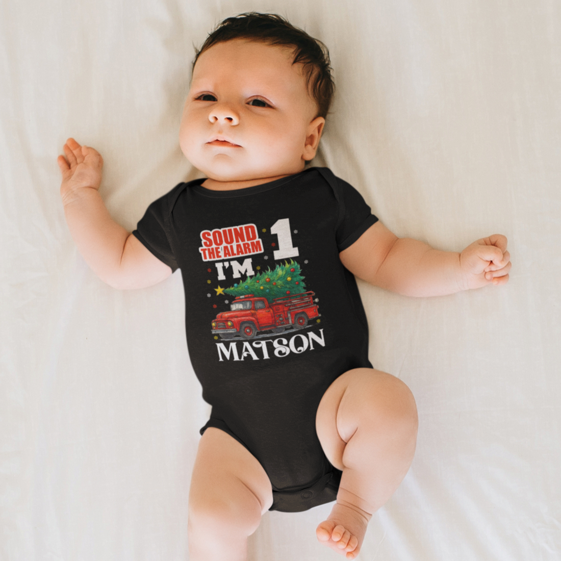 Personalized Firefighter 1st Birthday Onesie - Custom Fire Truck Baby Bodysuit
