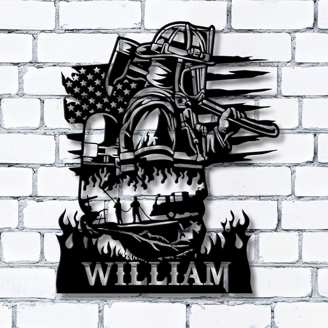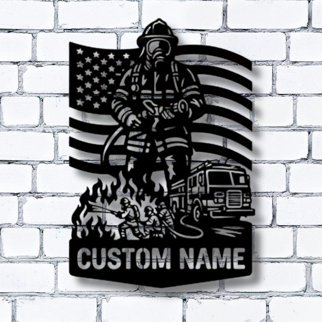 Custom Firefighter Metal Sign with Name - Personalized Fireman American Flag Wall Art