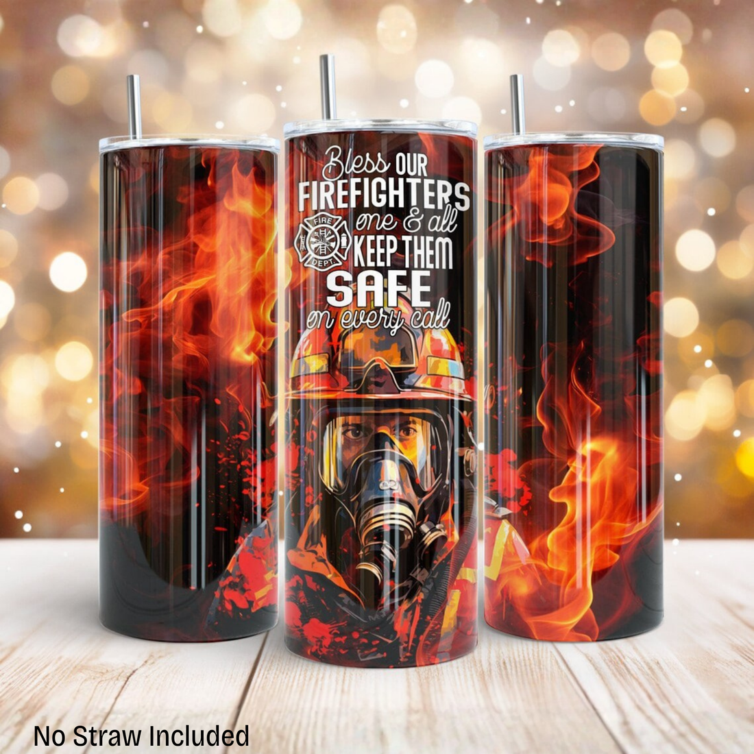 Firefighter Prayer Tumbler 20oz Skinny Tumbler - Bless Our Firefighters Keep Them Safe