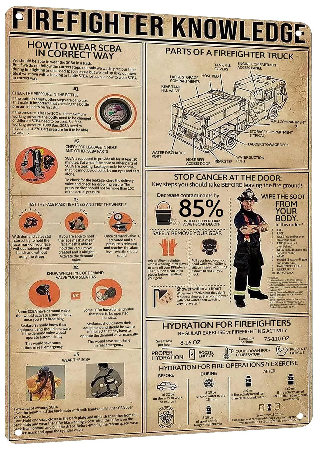 Ehren Sie die Tapferen mit diesem umfassenden Informationsschild für Feuerwehrleute! Dieses lehrreiche Blechposter im Vintage-Stil...