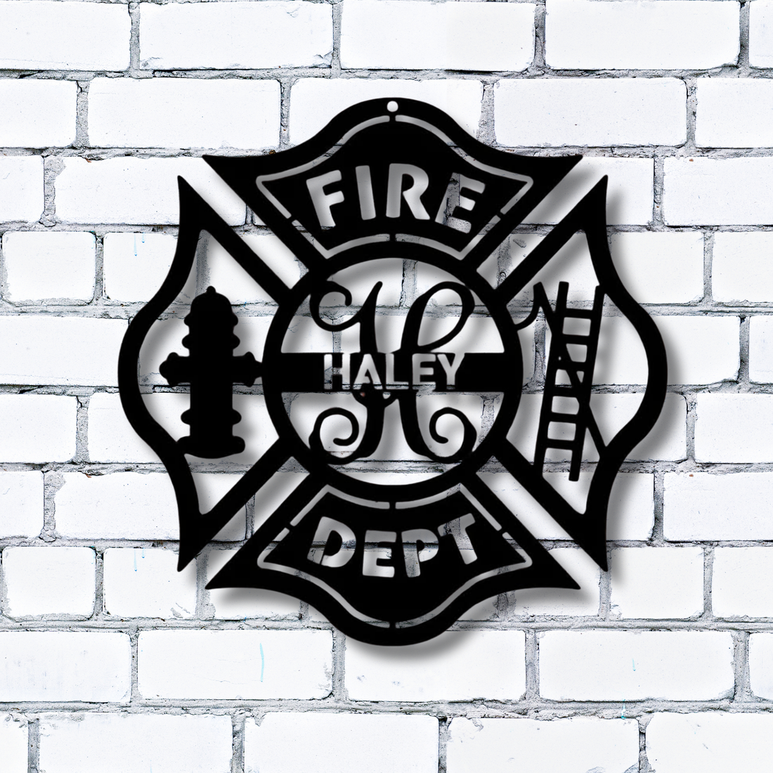 Verziertes Feuerwehrabzeichen mit Malteserkreuz, personalisierbares Namensschild aus Metall – Personalisierte Wanddekoration
