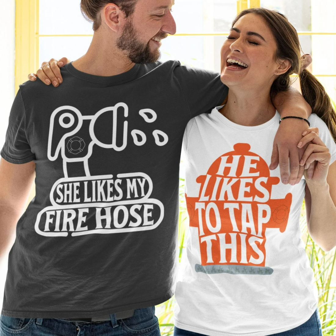 Firefighter Couple Shirts - Funny Joke Fire Hose Tap This Tees Gift Set