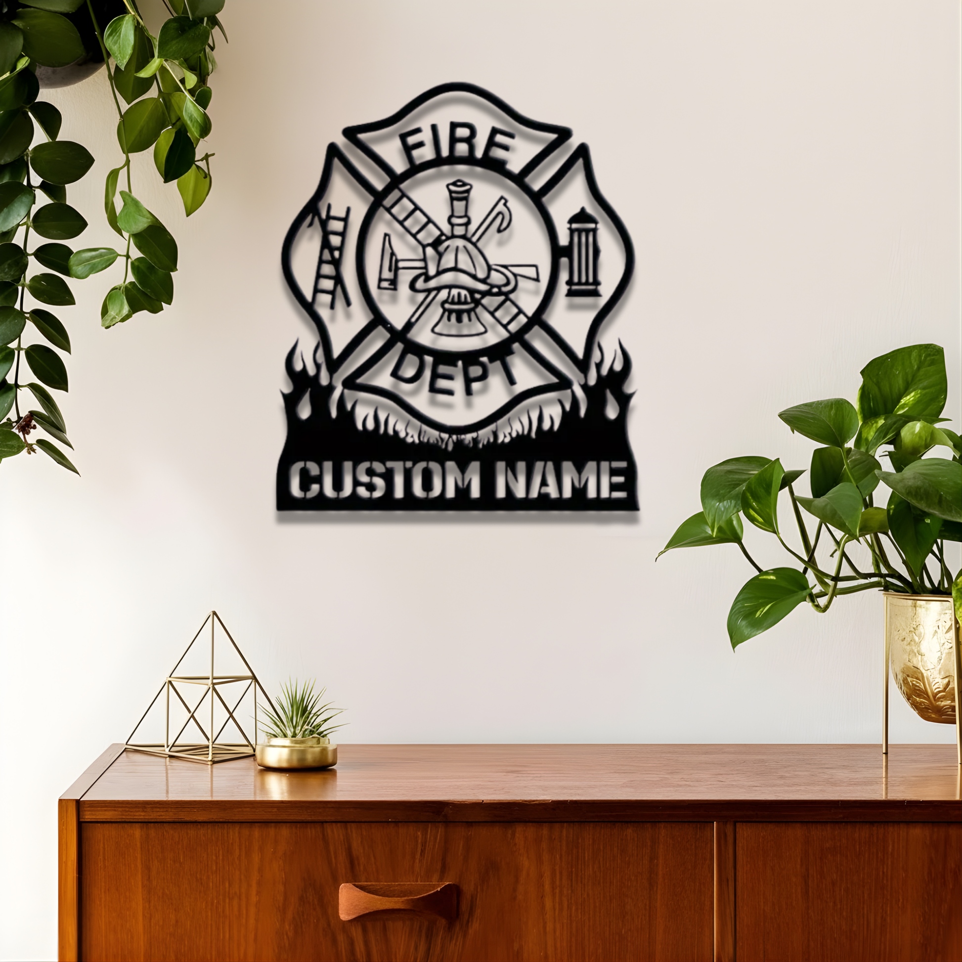 Feuerwehr-Malteserkreuz-Metallschild mit individuellem Namen – Personalisierte Wanddekoration für die Feuerwehr