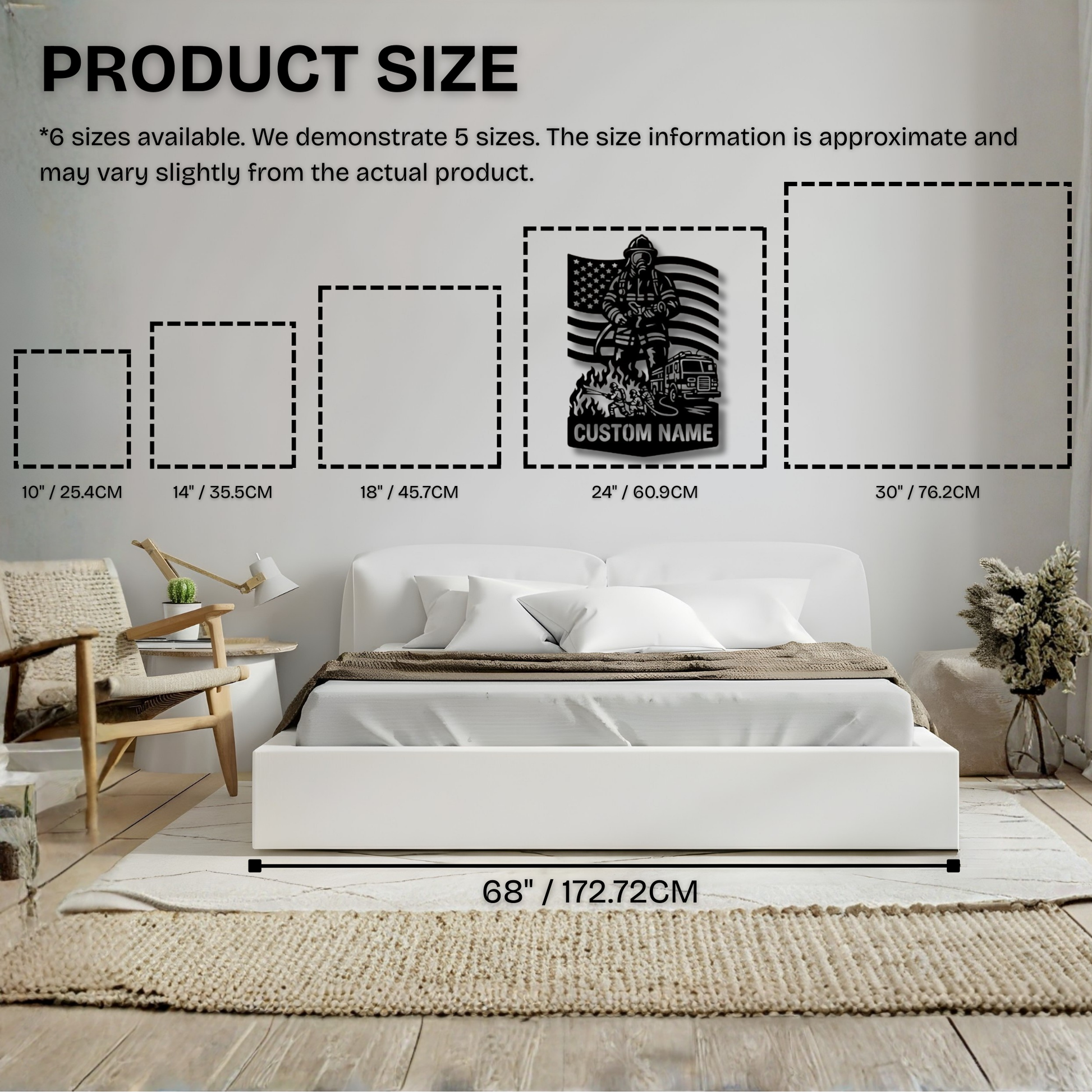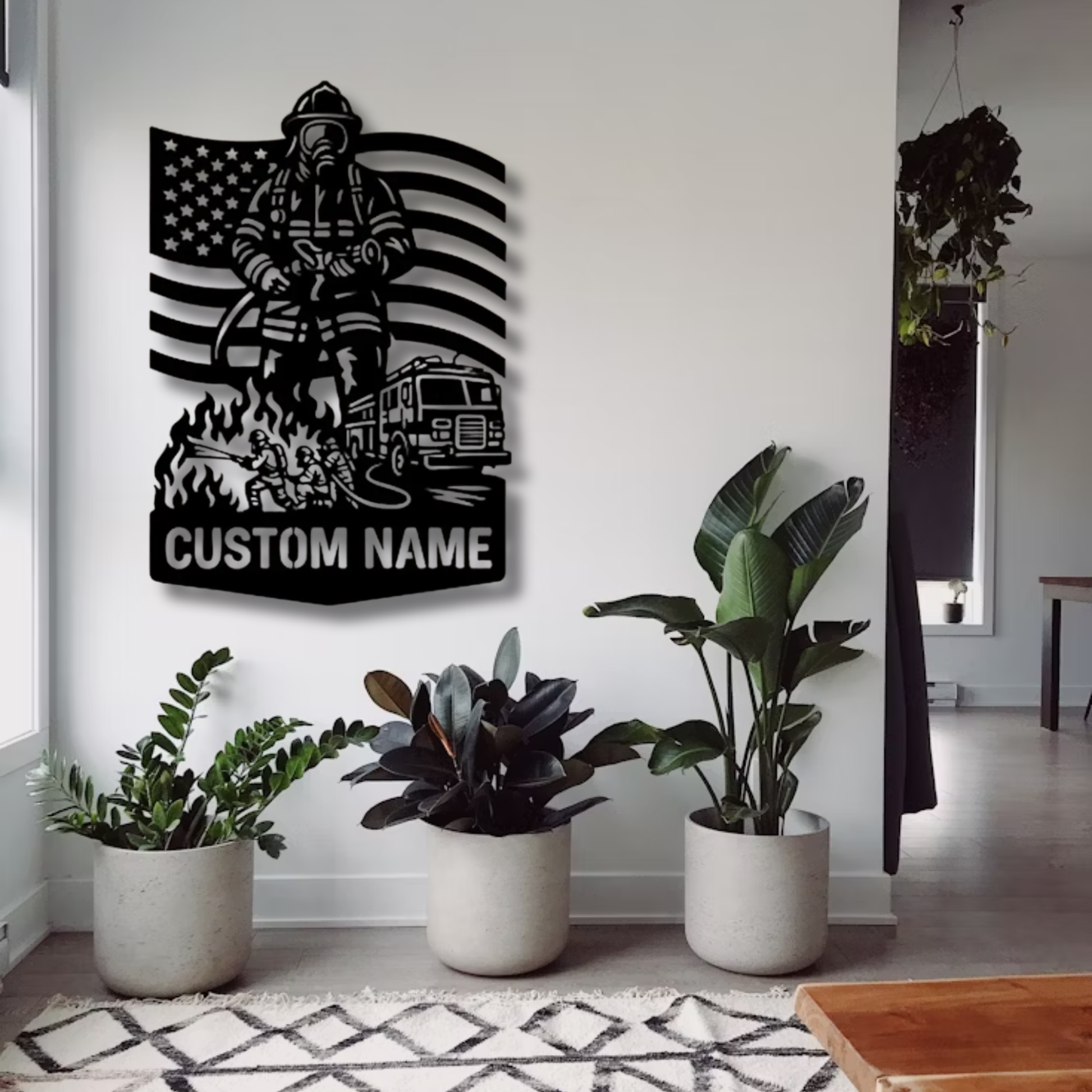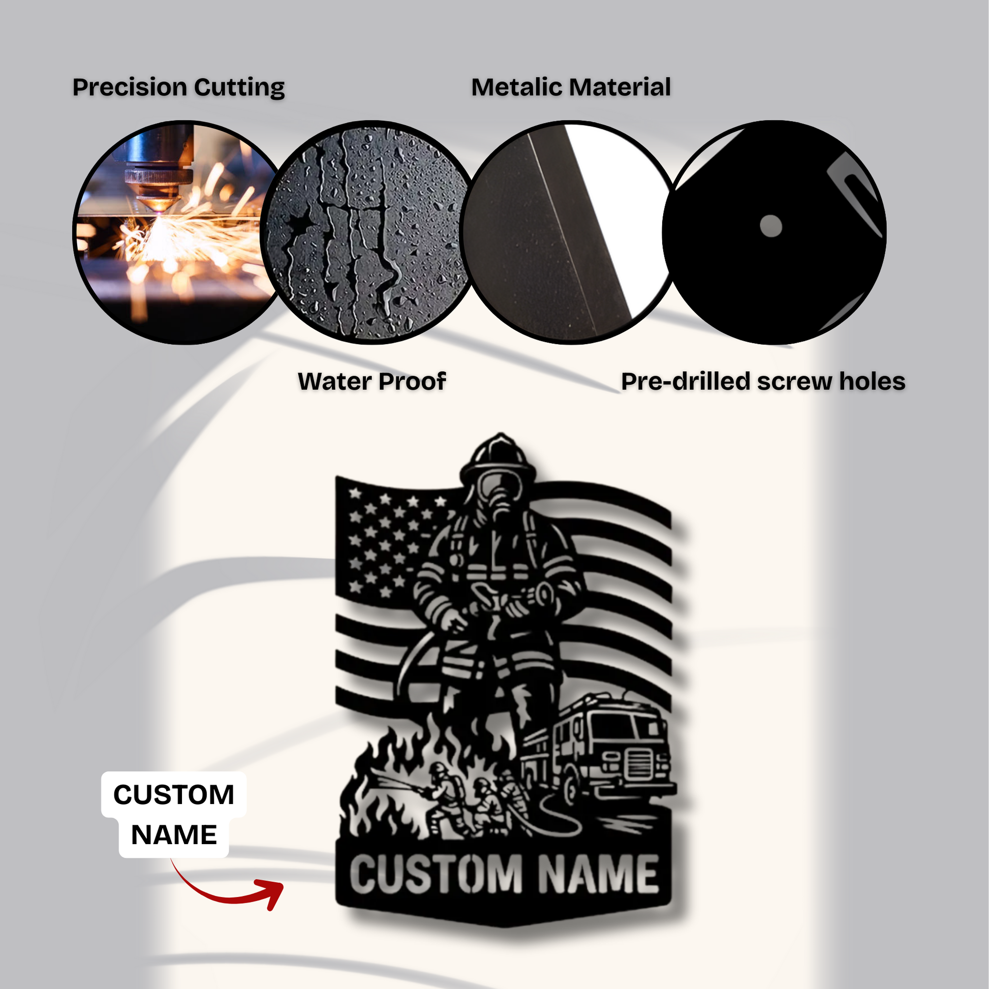 Ein außergewöhnliches Geschenk für Feuerwehrleute, Ruhestandsfeiern, Auszeichnungen der Feuerwehr oder alle, die personalisierte Wandkunst suchen, die Ersthelfer mit individuellen Details ehrt. Es entstehen einzigartige Ausstellungsstücke, die den individuellen Dienst würdigen und gleichzeitig anspruchsvolle Metallkunstwerke für Häuser, Feuerwachen und Gedenkstätten schaffen. Die robuste Konstruktion und die professionelle Laserschnittverarbeitung garantieren jahrelange, dauerhafte Ehrung und Stolz.