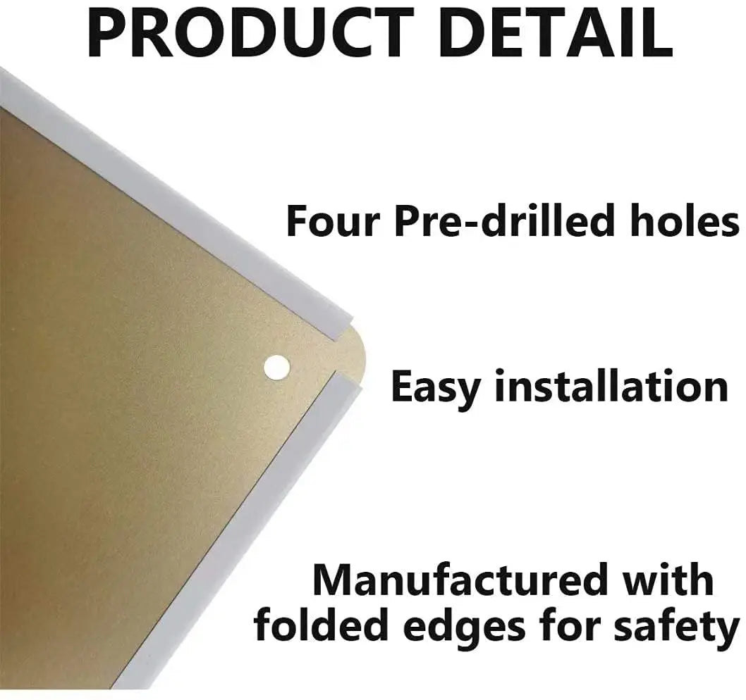 - Das Metallschild darf nicht gebogen oder geknickt werden.