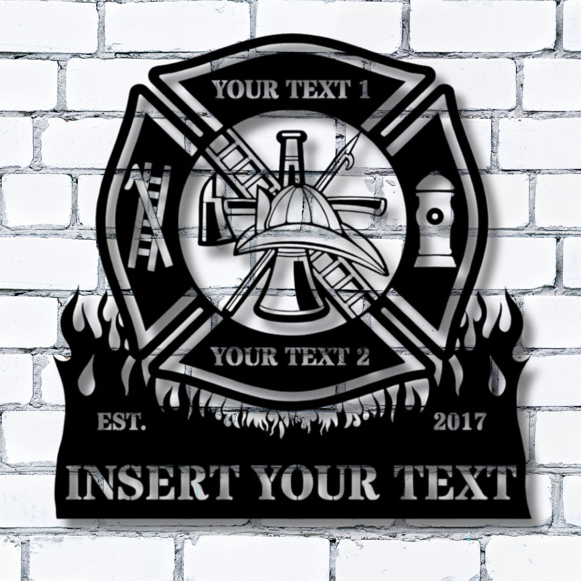 Personalized Firefighter Metal Sign - Custom Maltese Cross Fire Dept Decor