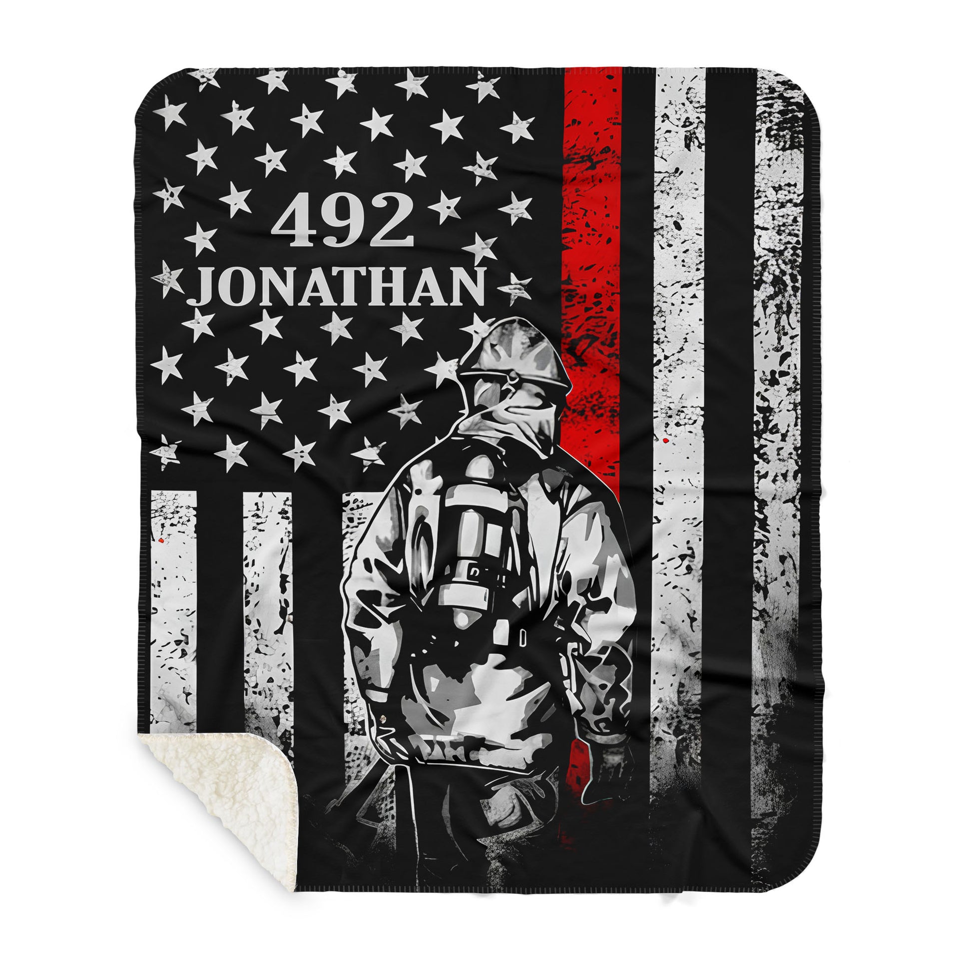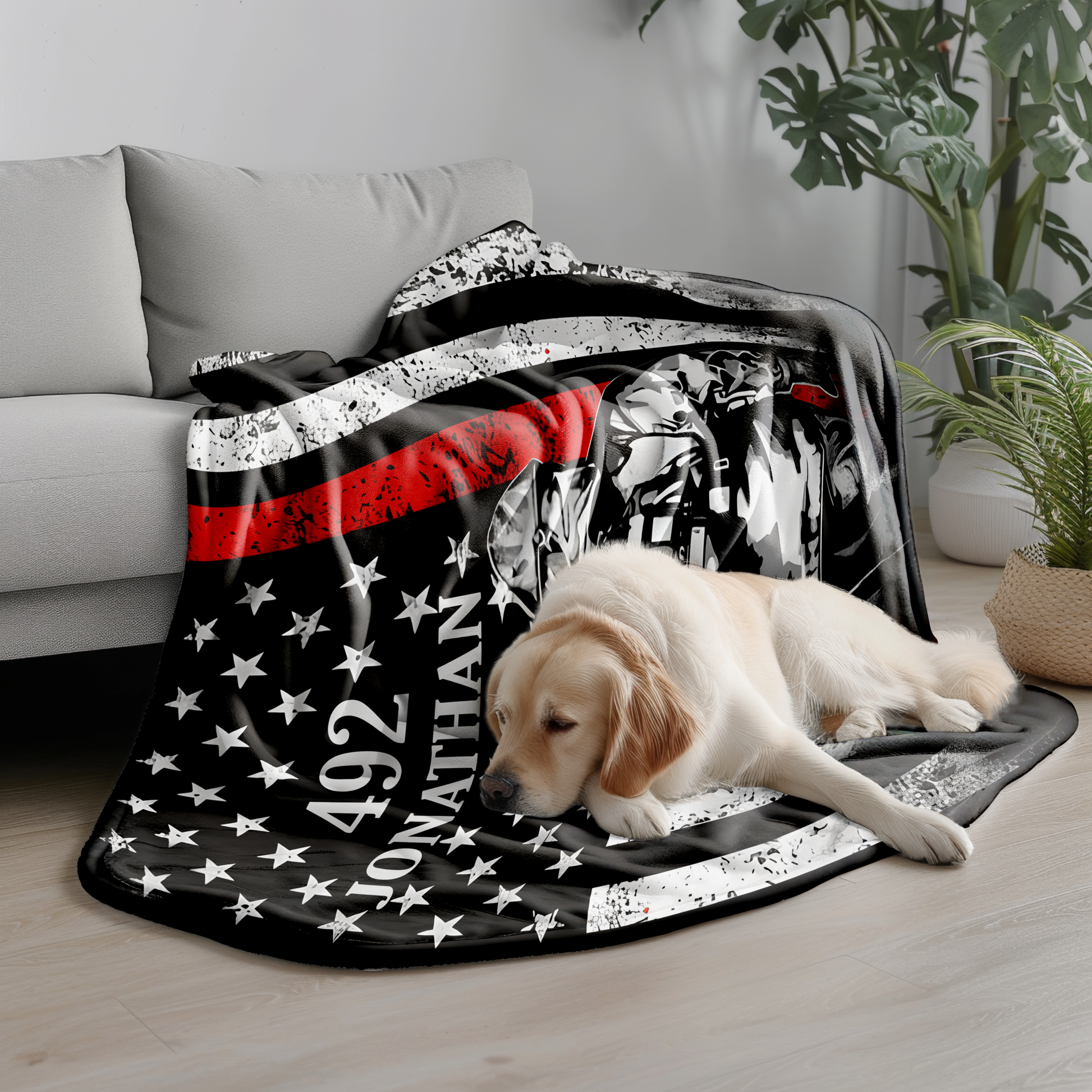 Couverture personnalisée pour pompier - Drapeau rouge avec nom et numéro