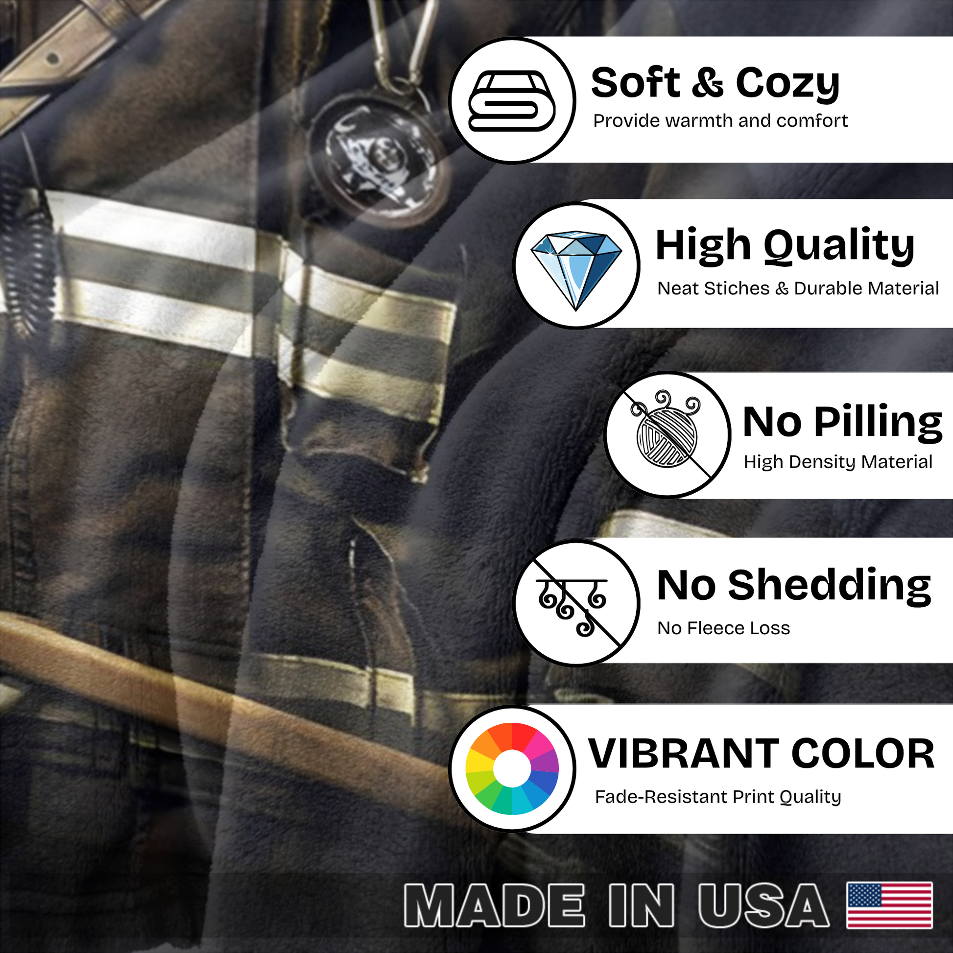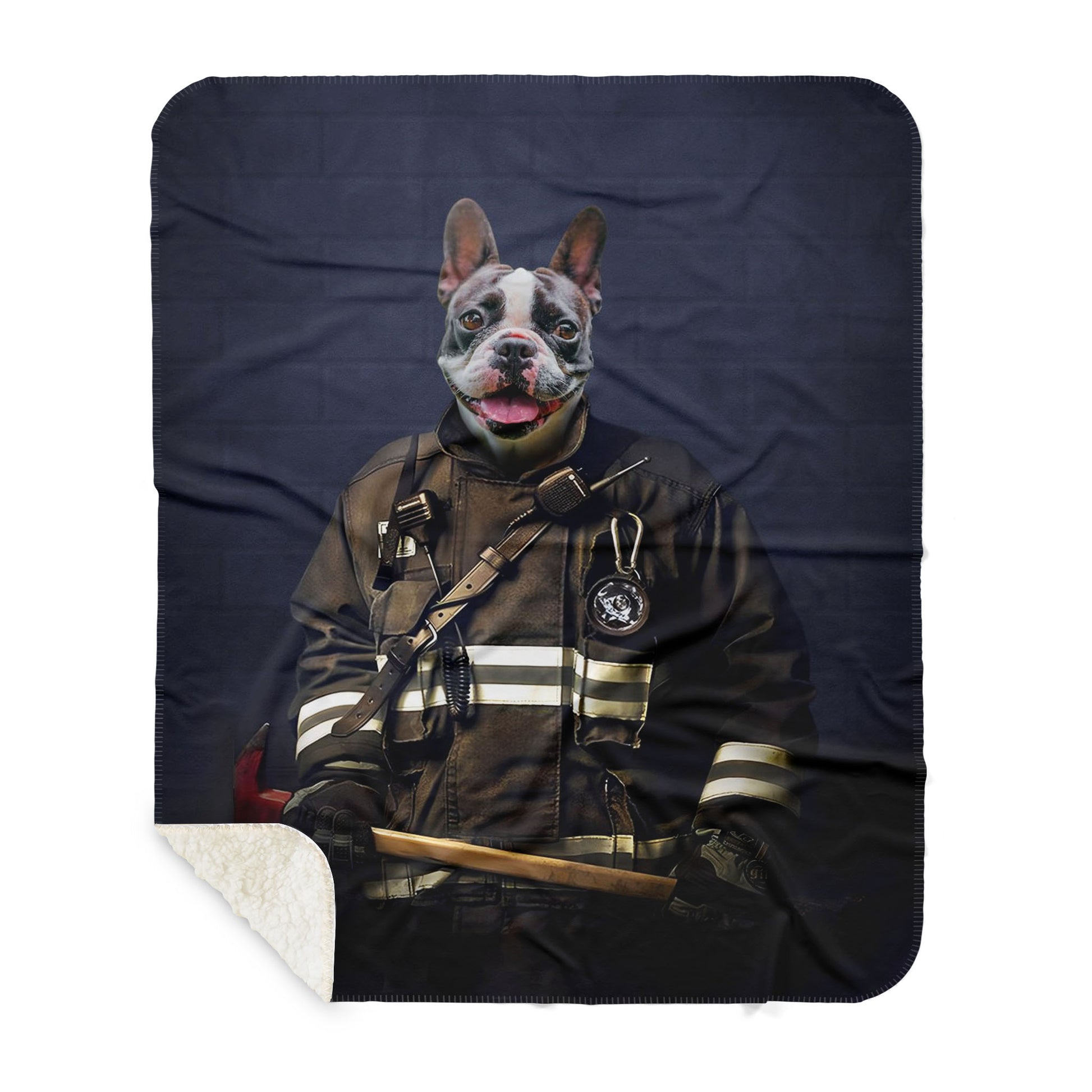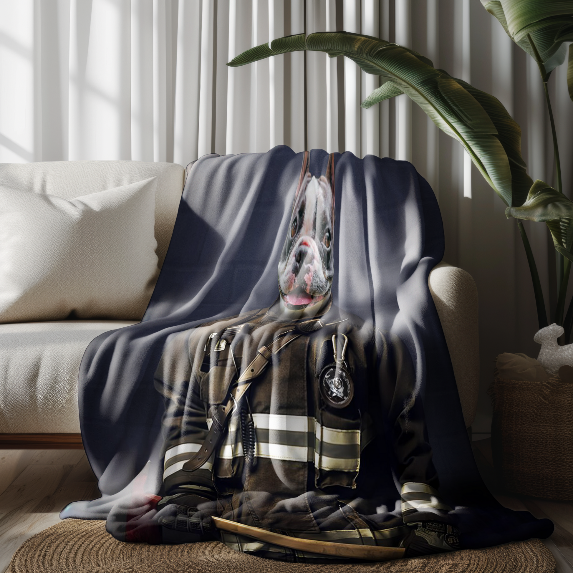 Couverture personnalisée avec photo d'animal de compagnie et portrait de pompier - Style studio