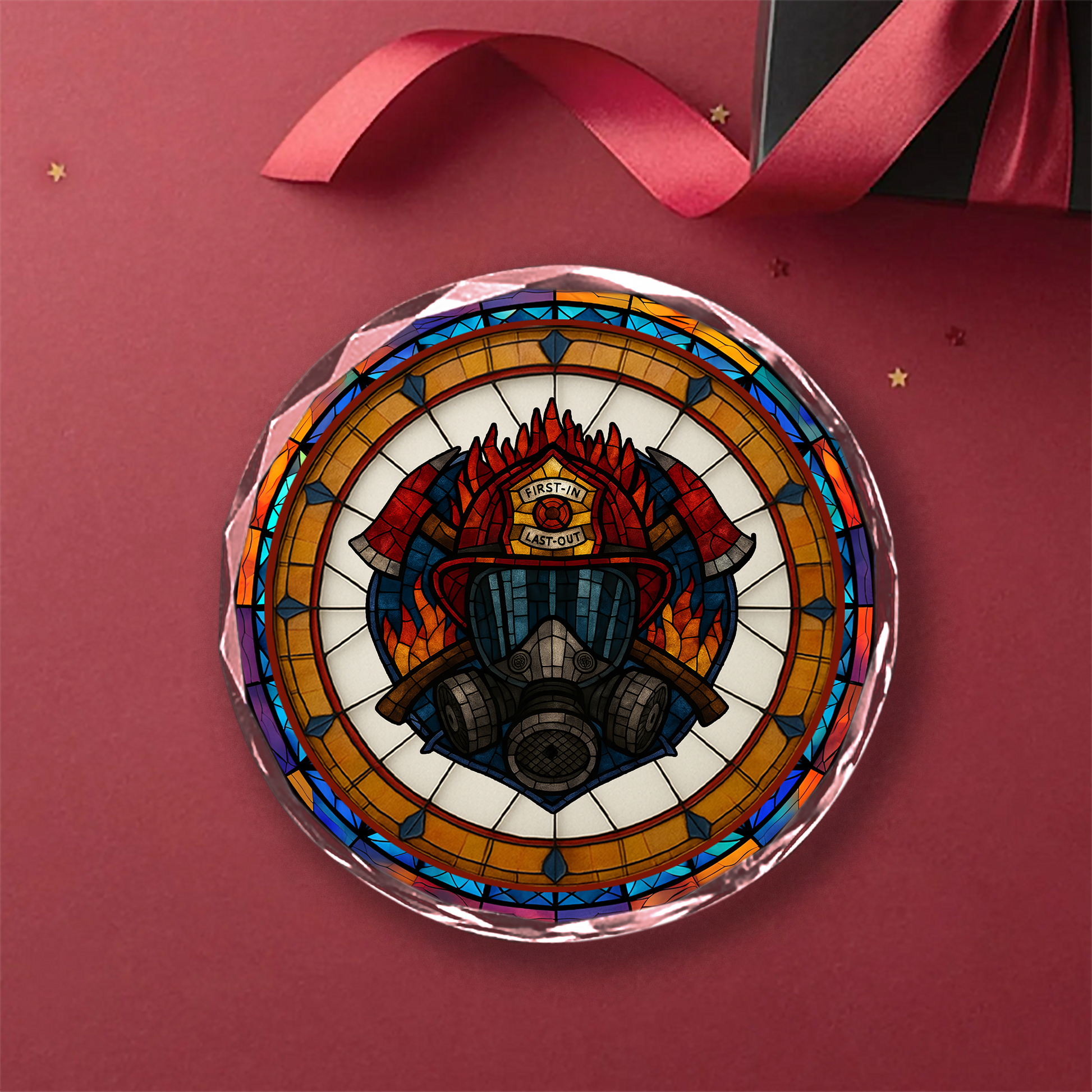 Ornement « Pompier, premier arrivé, dernier parti » - Prisme en verre cristal