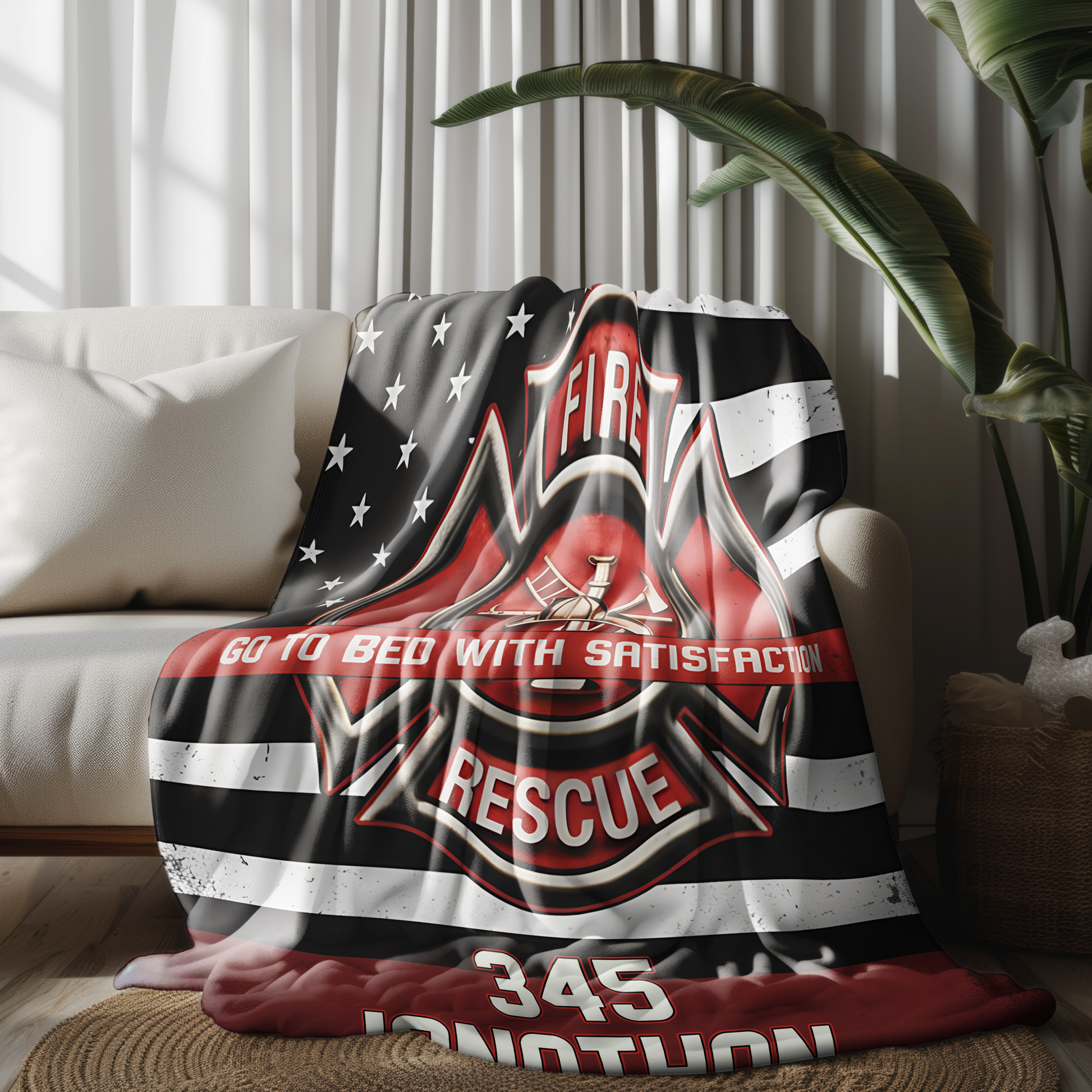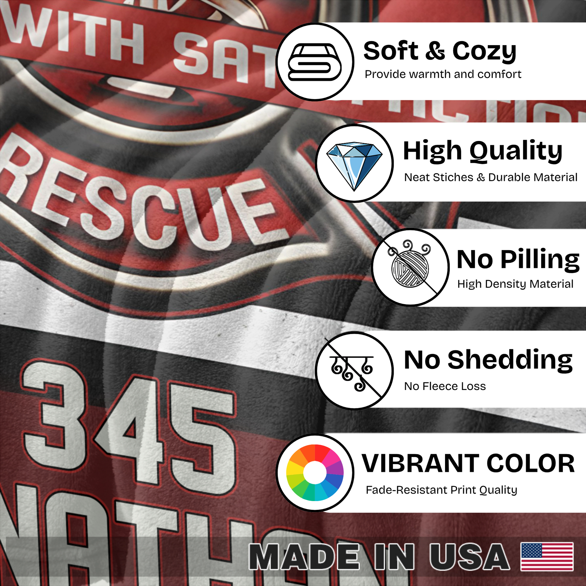 Couverture personnalisée pour pompiers - Motif drapeau américain