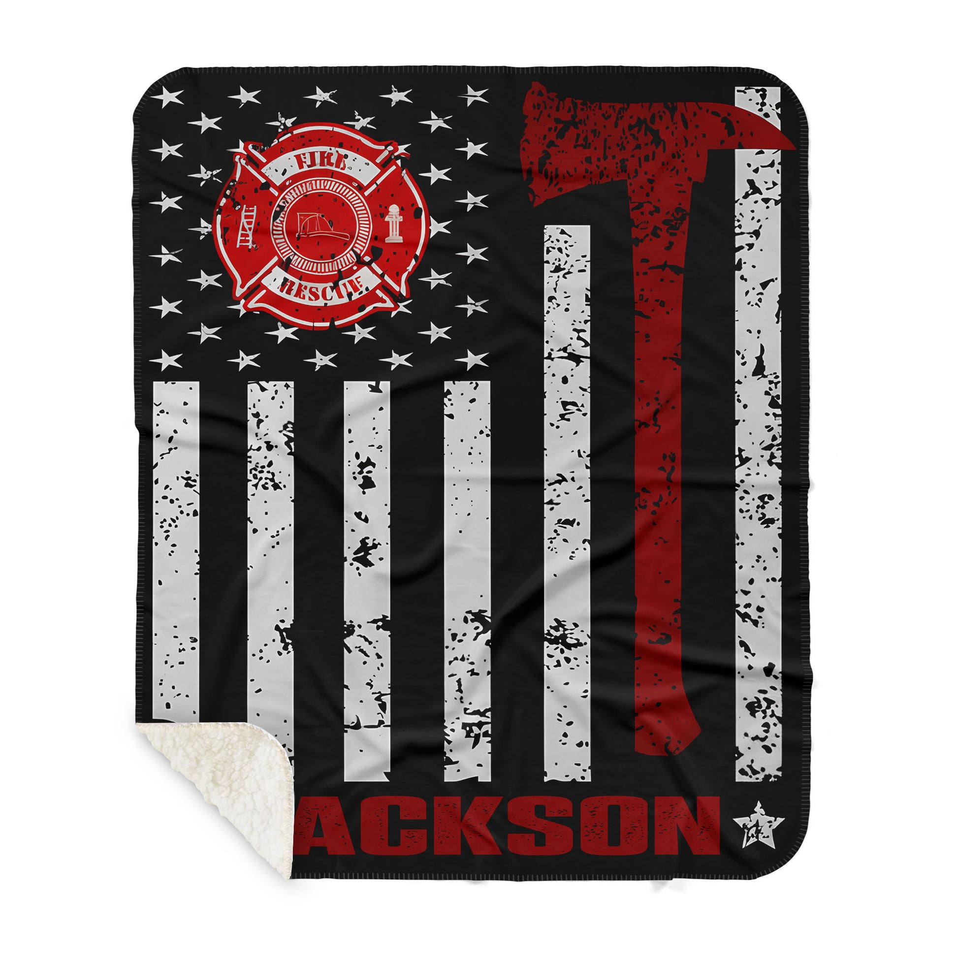 Couverture personnalisée pour pompier - Drapeau de la Ligne Rouge - Nom personnalisé