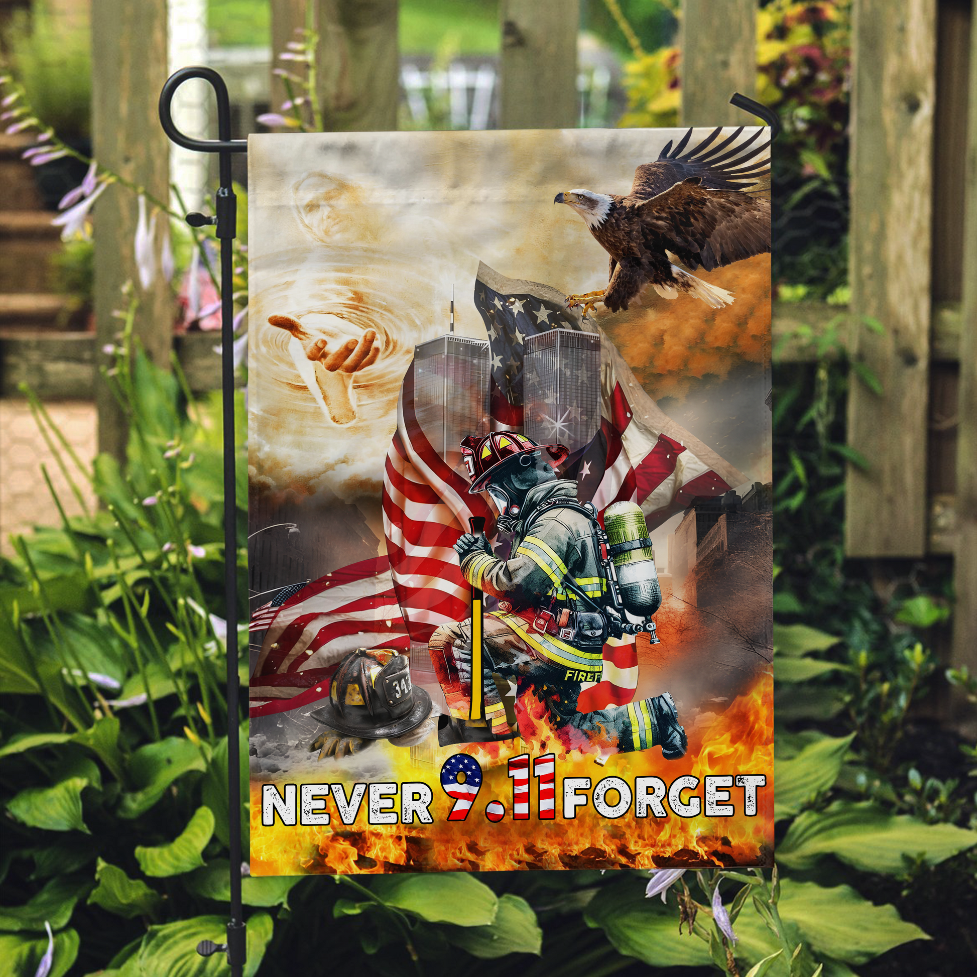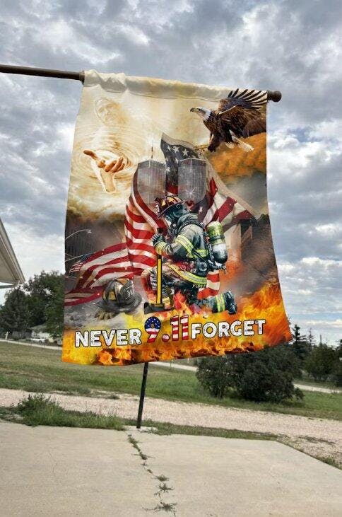 Garden Flag (12x18) - Perfect Memorial Garden Accent: The companion 12x18 garden flag offers an intimate way to remember and honor 9/11 heroes in your garden, yard, or patio area. Meticulously printed using dye sublimation process on high-quality polyester canvas, this memorial flag delivers crisp details and vibrant colors that resist fading through countless seasons of remembrance.