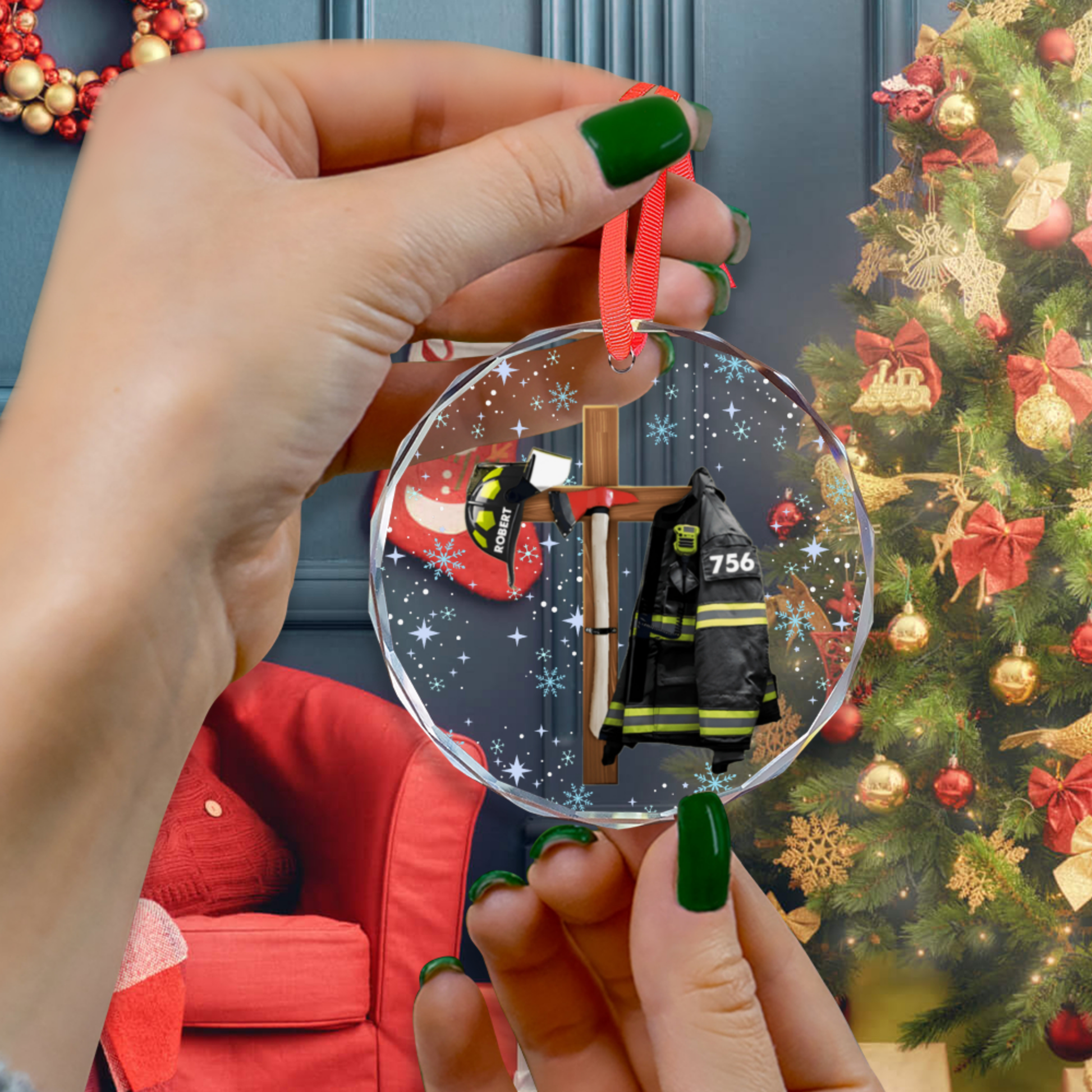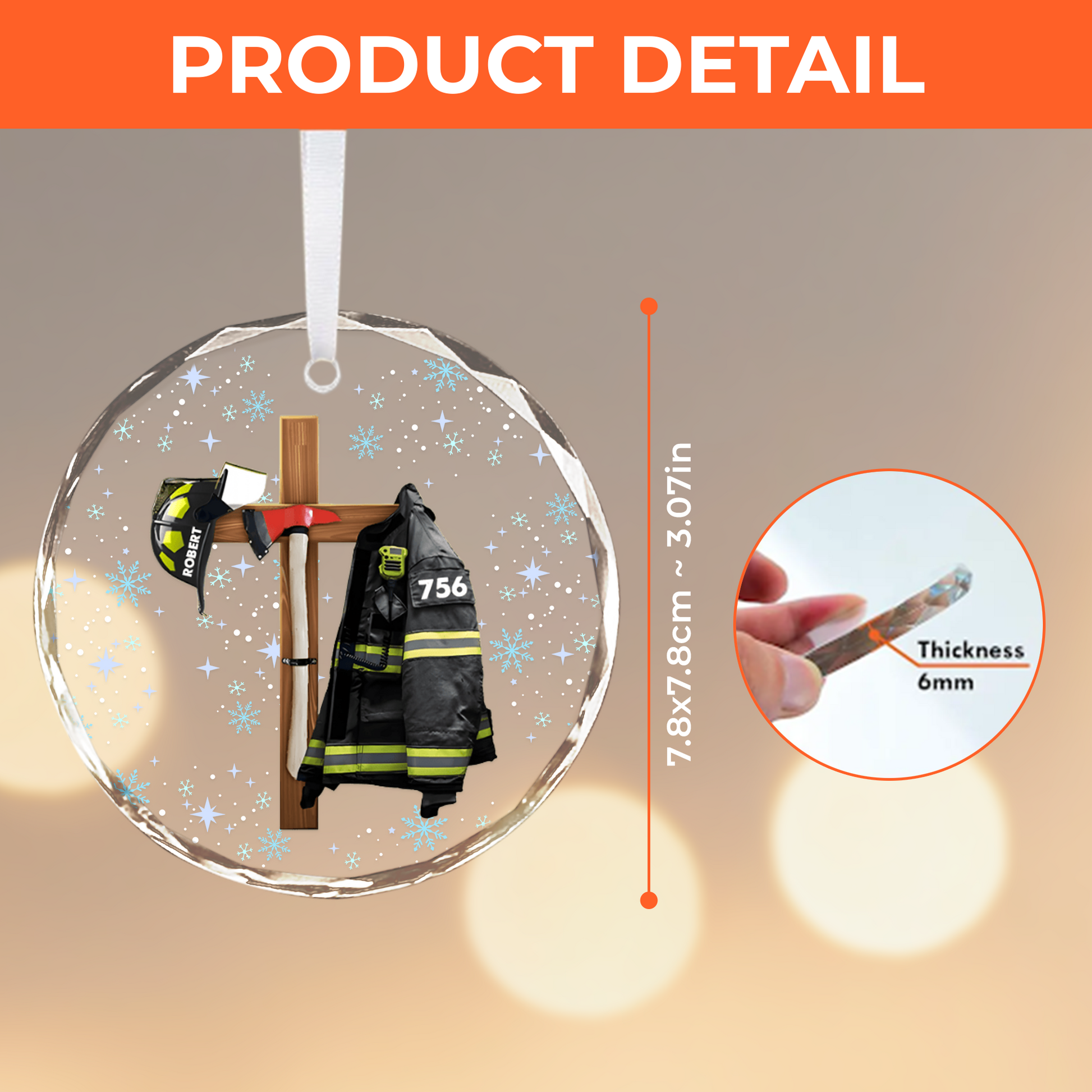 Custom Christian FireFighter Ornament - Personalized Name Number Glass Ornament