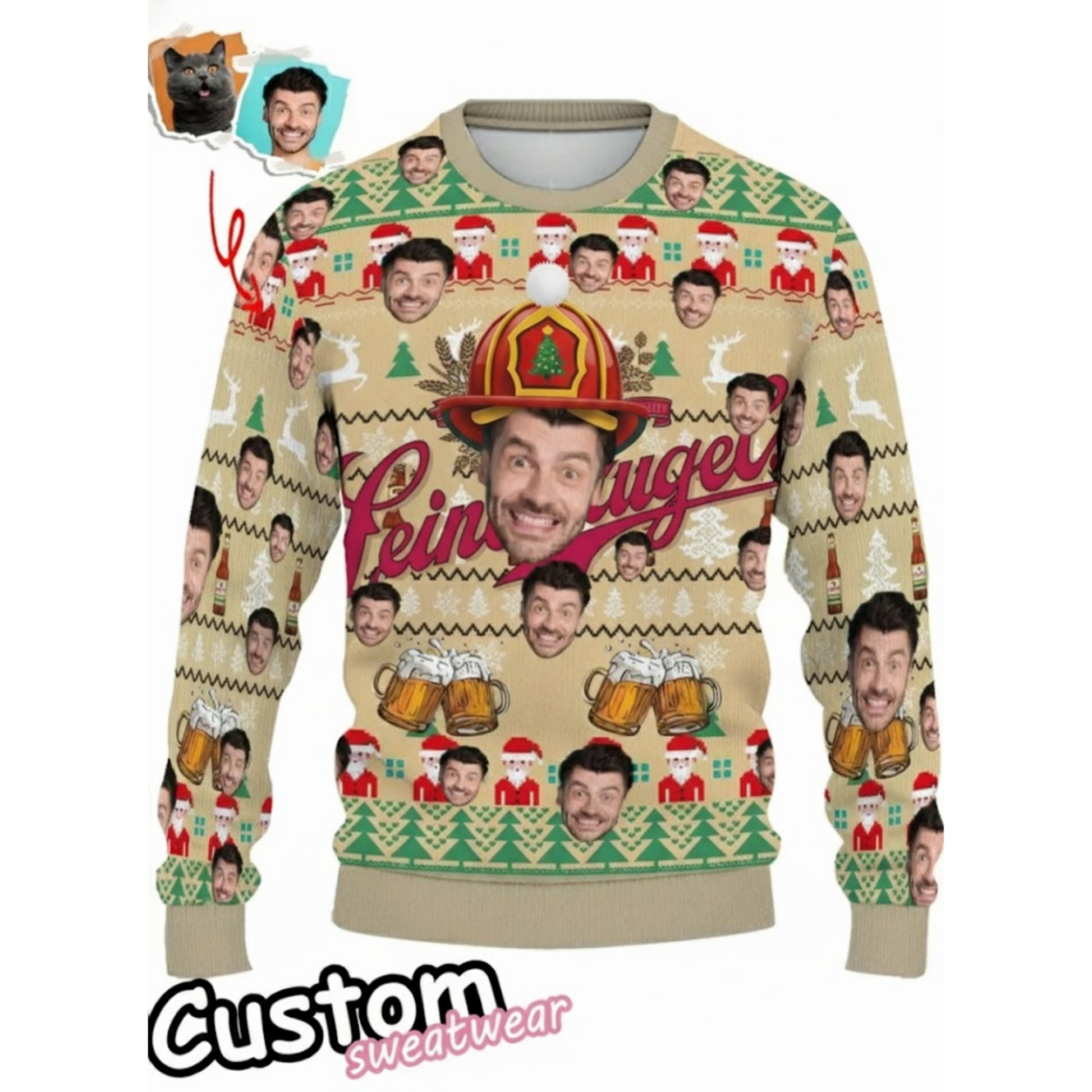 Transform yourself into a walking holiday masterpiece with this custom face ugly Christmas sweater from FirerescueTM. Whether creating the ultimate conversation starter for ugly sweater parties, giving an unforgettable personalized gift that guarantees laughs, documenting family holiday memories with matching custom sweaters, or simply expressing your unique personality with wearable art featuring your own smiling face, this customizable pullover lets you become the star of every holiday gathering with Nordic patterns providing the perfect backdrop for your repeated photographic appearances that will have everyone doing double-takes and reaching for their cameras.