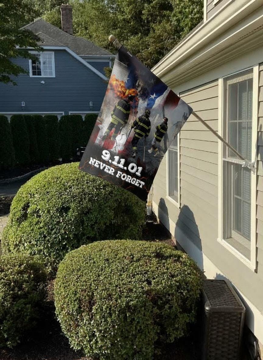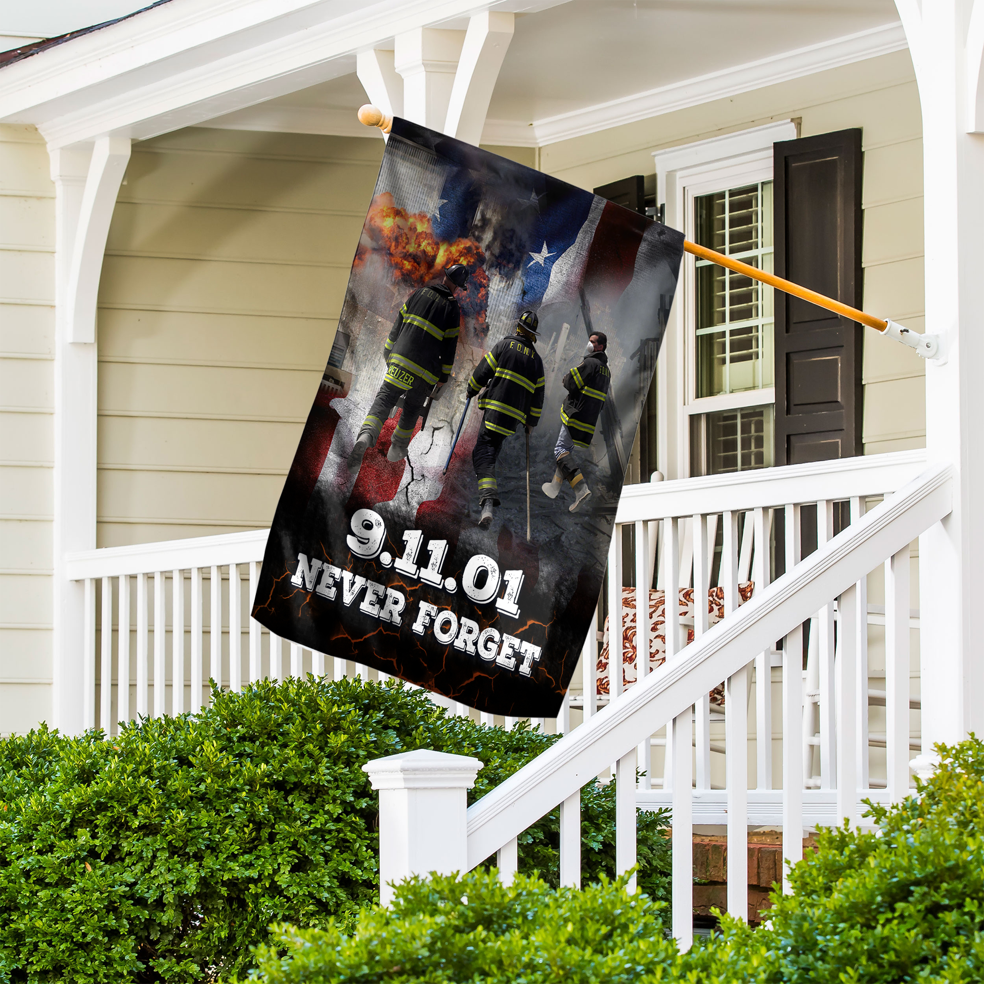 House Flag (28x40) - Maximum Impact Memorial Display: The 28x40 double-sided house flag creates a commanding presence that honors the memory of 9/11 heroes. Using cutting-edge dye sublimation technology, this memorial flag features rich, fade-resistant colors that remain vibrant on both sides, ensuring your tribute is visible from every angle. Crafted from durable, weather-resistant material, this flag withstands all elements while maintaining its dignified appearance for years of meaningful display.