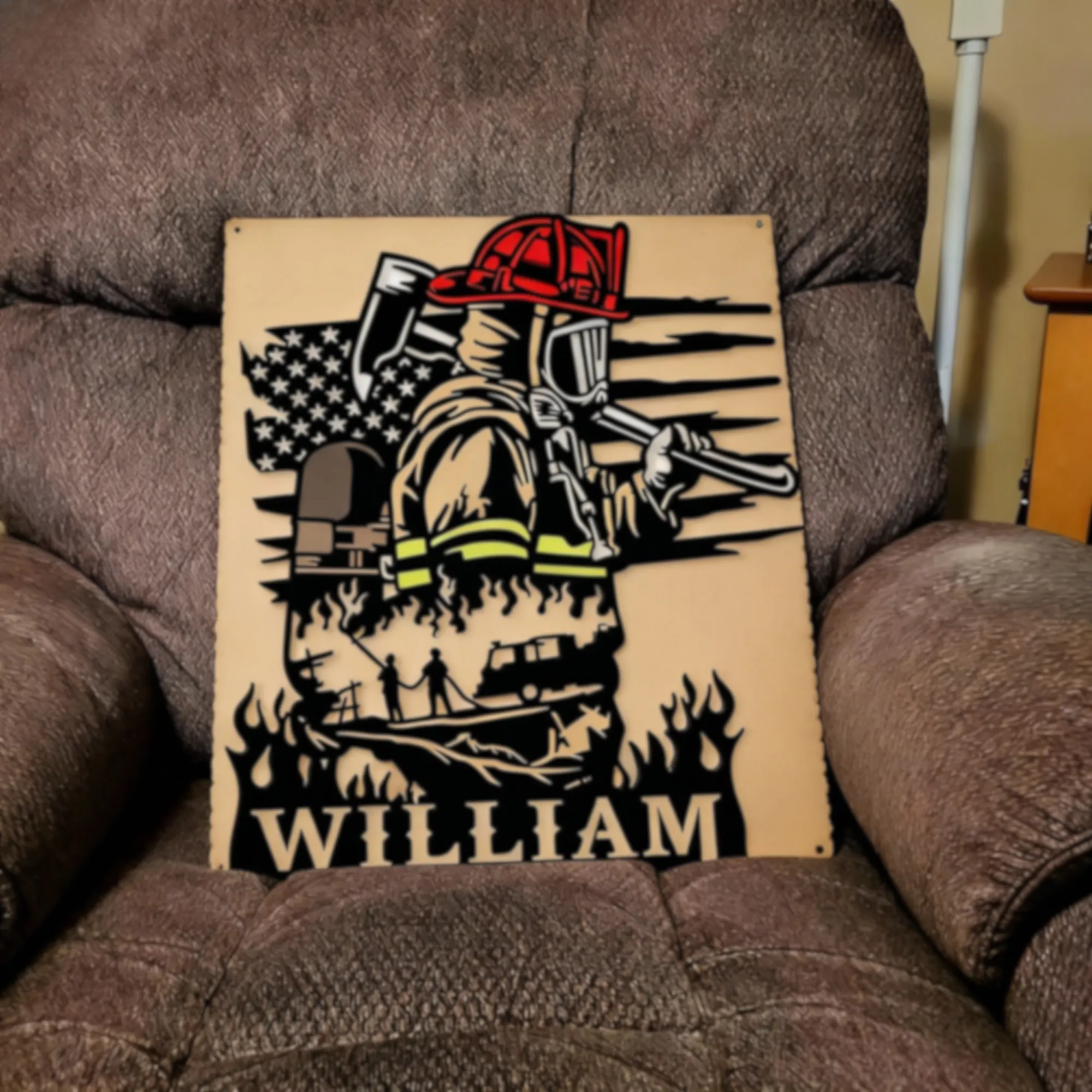 Transform any wall into a personalized firefighter tribute with this custom metal sign. Whether honoring an active firefighter, celebrating a retirement, creating a memorial space, or adding character to a fire station, this laser-cut silhouette with customizable name text creates a lasting tribute that celebrates individual courage and service with professional quality and meaningful personalization.