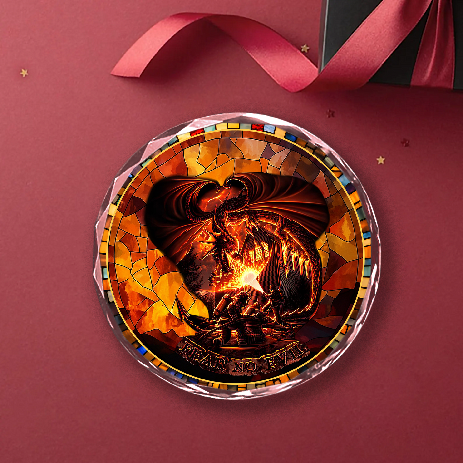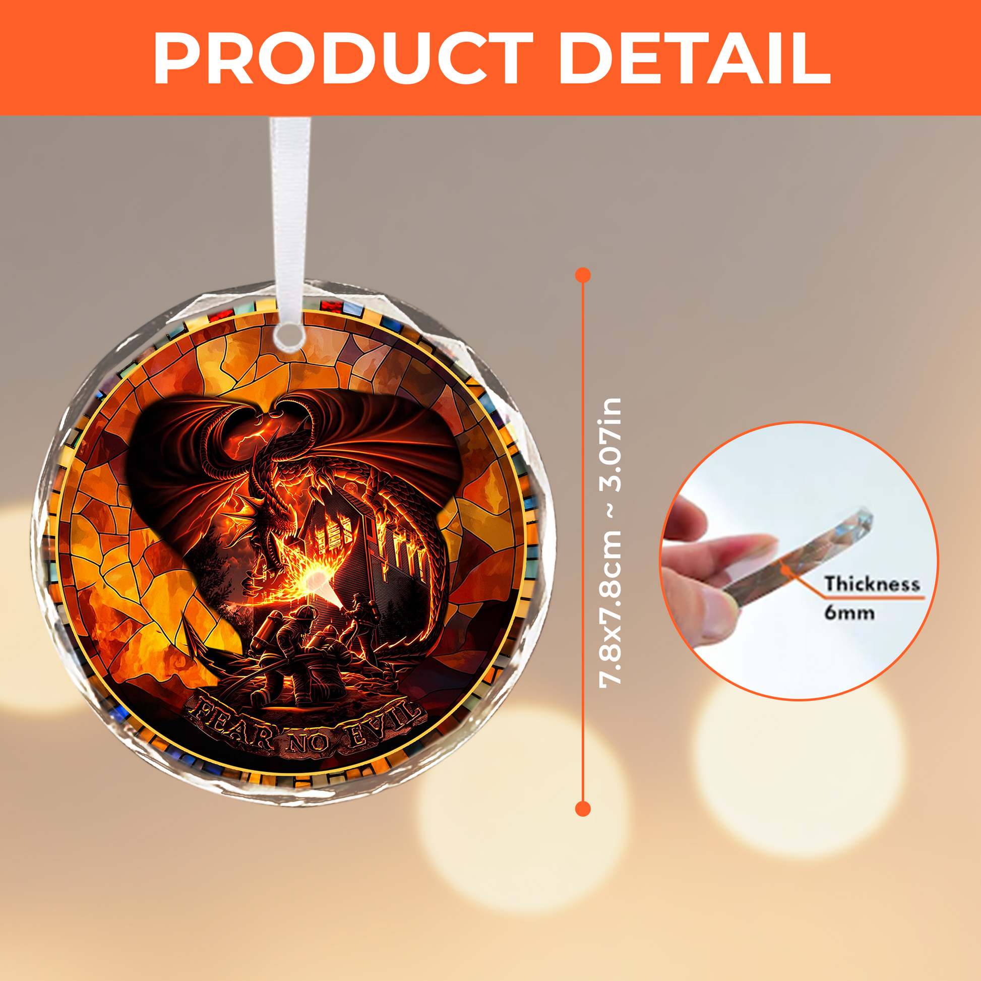 Firefighter Dragon Christmas Ornament - Fear No Evil Crystal Prism Glass Circle