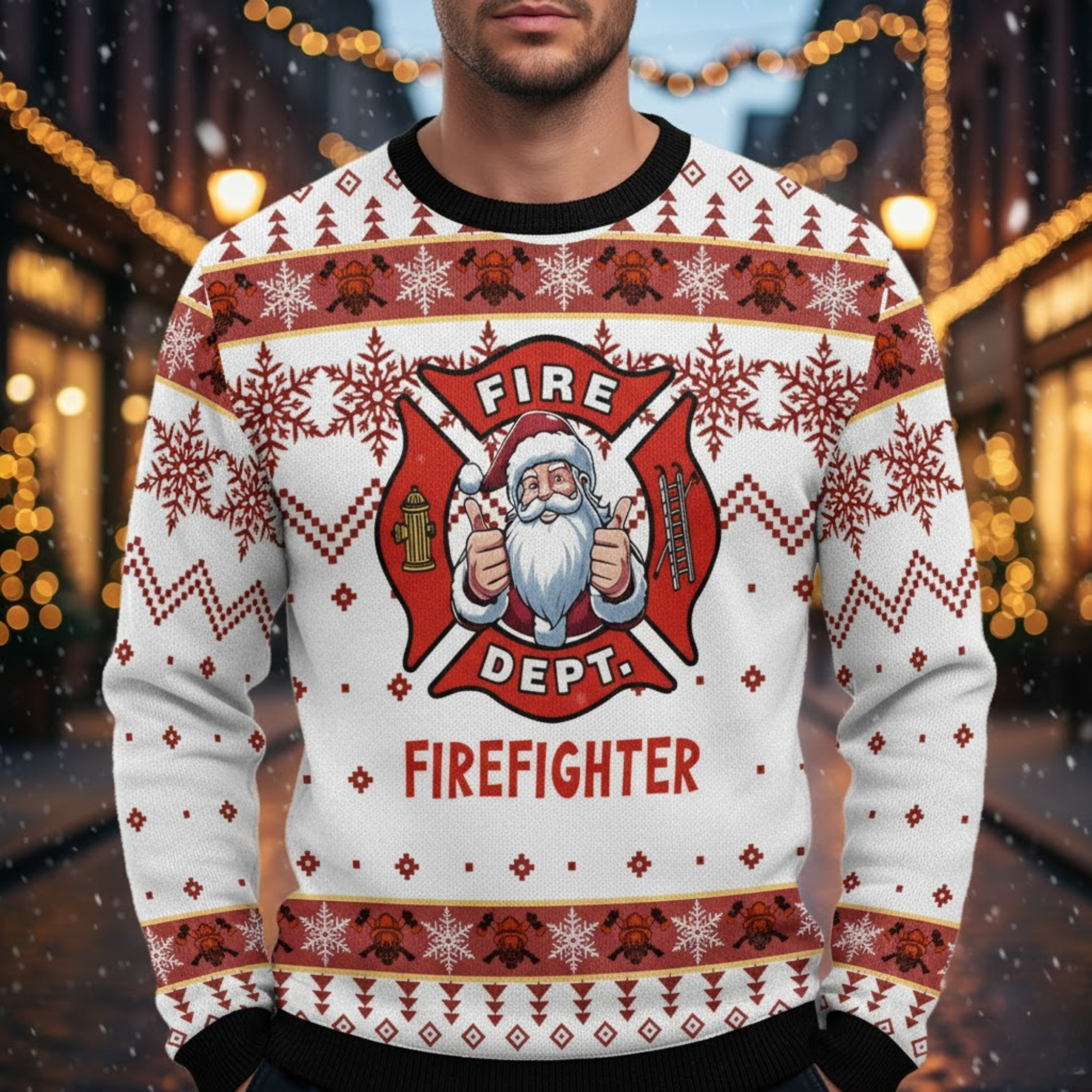 - Classic Ugly Sweater Style: Traditional holiday patterns with firefighter twist - perfect for themed parties