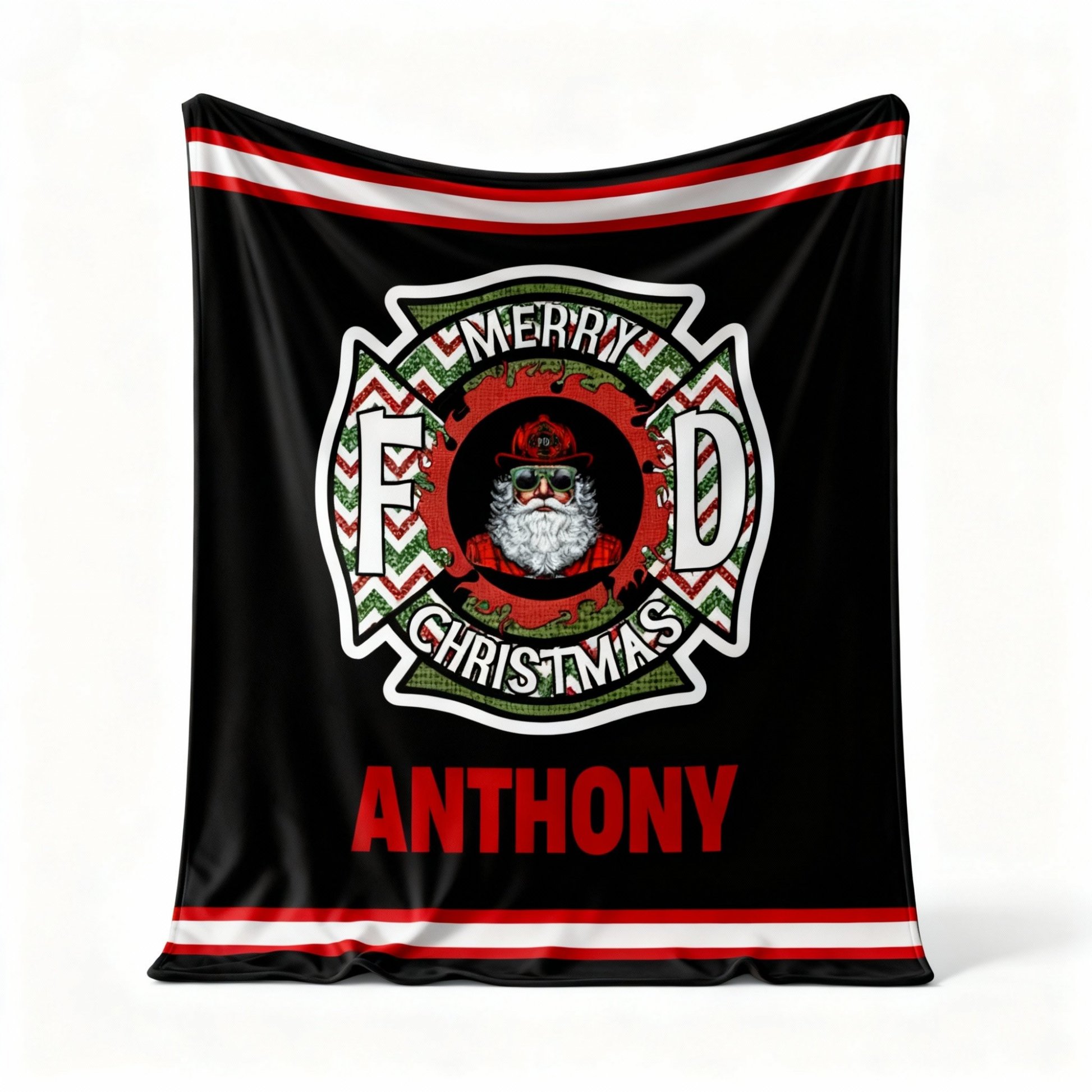 Personalized Santa Fire Department Blanket - Custom Name Christmas Holiday
